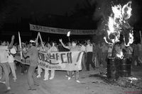 거리로 나온 전대협 학생들이 시위를 시작하려는 모습