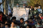 마이크를 들고 시위대를 선동하는 남자의 모습