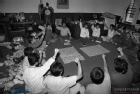 전국노동자대회 열린 여의도광장 무대 위에서 구호를 외치는 노동자들
