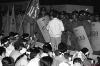 무장경찰과 대치 중인 클린턴 방한 저지 운동을 하는 한총련 및 농민들 모습