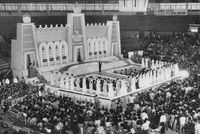 범민족대회 개막식 본대회에서 연설하는 민주인사