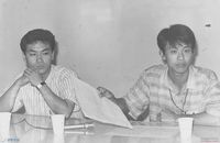 한양대학교에서 열린 8.15 50주년 민족공동행사 전야제에서 성명서를 읽고 있는 참가자