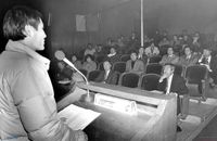 대구 교도소 앞에서 조성우의 석방을 기다리는 사람들
