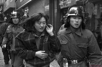수입개방에 항의하는 시위단과 의경들이 대치하고 있는 모습