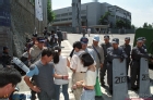경희궁 터에서 열린 조성만의 영결식에서 눈물 흘리는 참석자들