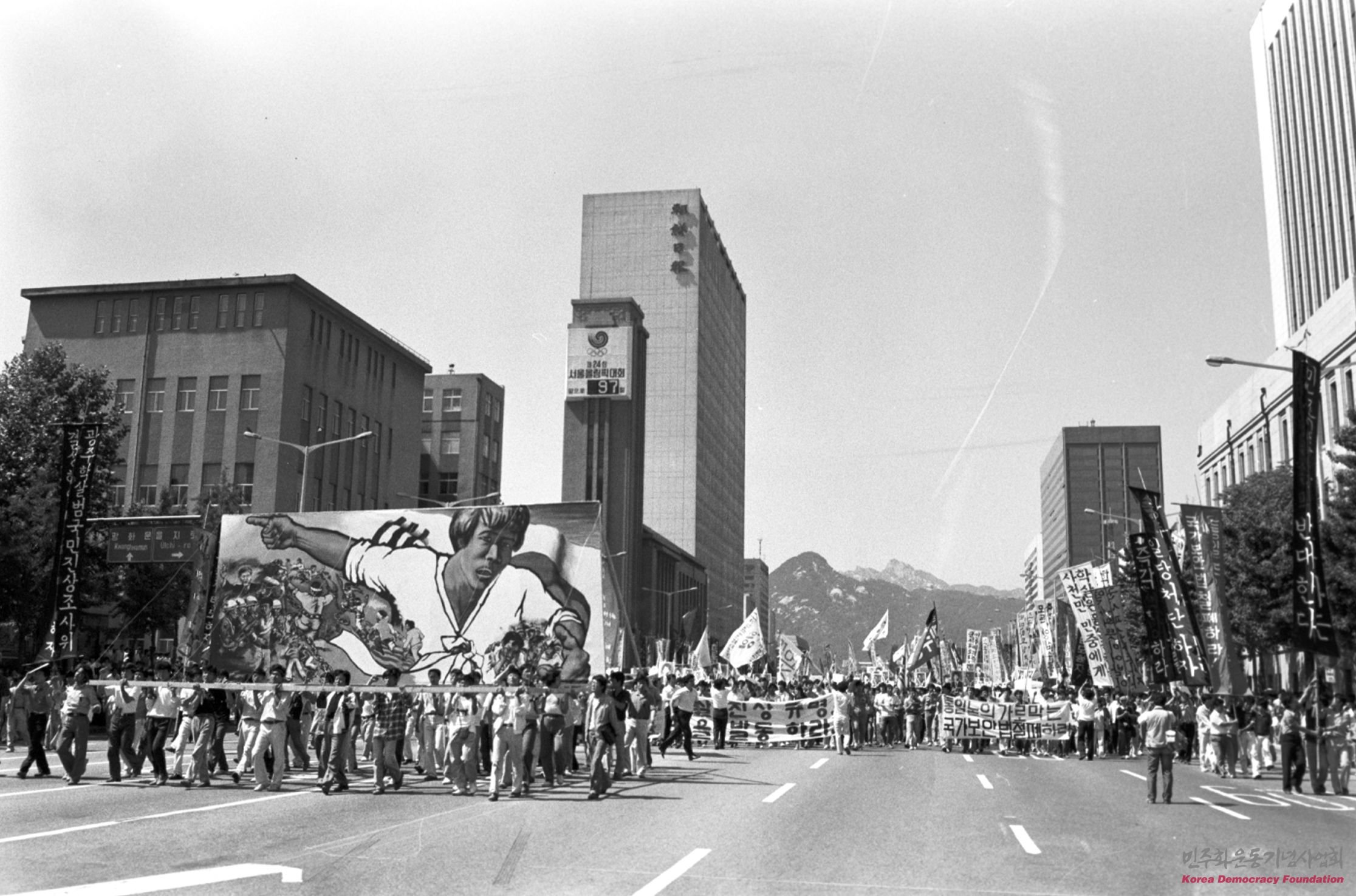 시청 앞 도로를 지나는 박래전 열사의 장례 행렬