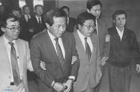 전태일 기념관 "평화의 집" 집들이 행사 진행광경. 오른쪽 두번째 이소선 여사