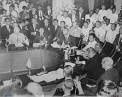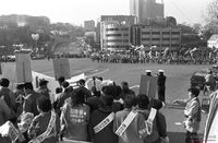 6.10 남북회담 성사를 위한 백만학도궐기대회에서 전원 기립하여 일제히 구호를 외치는 참가자들