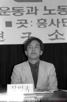 민통련 해산에 관한 임시대의원 대회에서 발언중인 문익환 민통련 의장