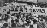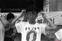 전대협 구국 단식 농성에 참석한 민청련 의장 이범영