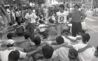 현대재벌 폭력테러규탄 국민대회의 연단에서 연설을 하는 백기완