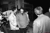 석방 후 영등포 교도소 앞에서 사람들과 인사를 나누는 이부영