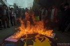 신민당사 앞에서 집회를 하기 위해 모여있는 전국노점상연합회 회원들