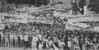 "평등사회 앞당기는 전노협" 이라고 쓰인 깃발을 흔들고 있는 모습