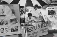 김세진, 이재호 추도식이 열린 서울대학교 정문 앞에서 시위하는 학생들