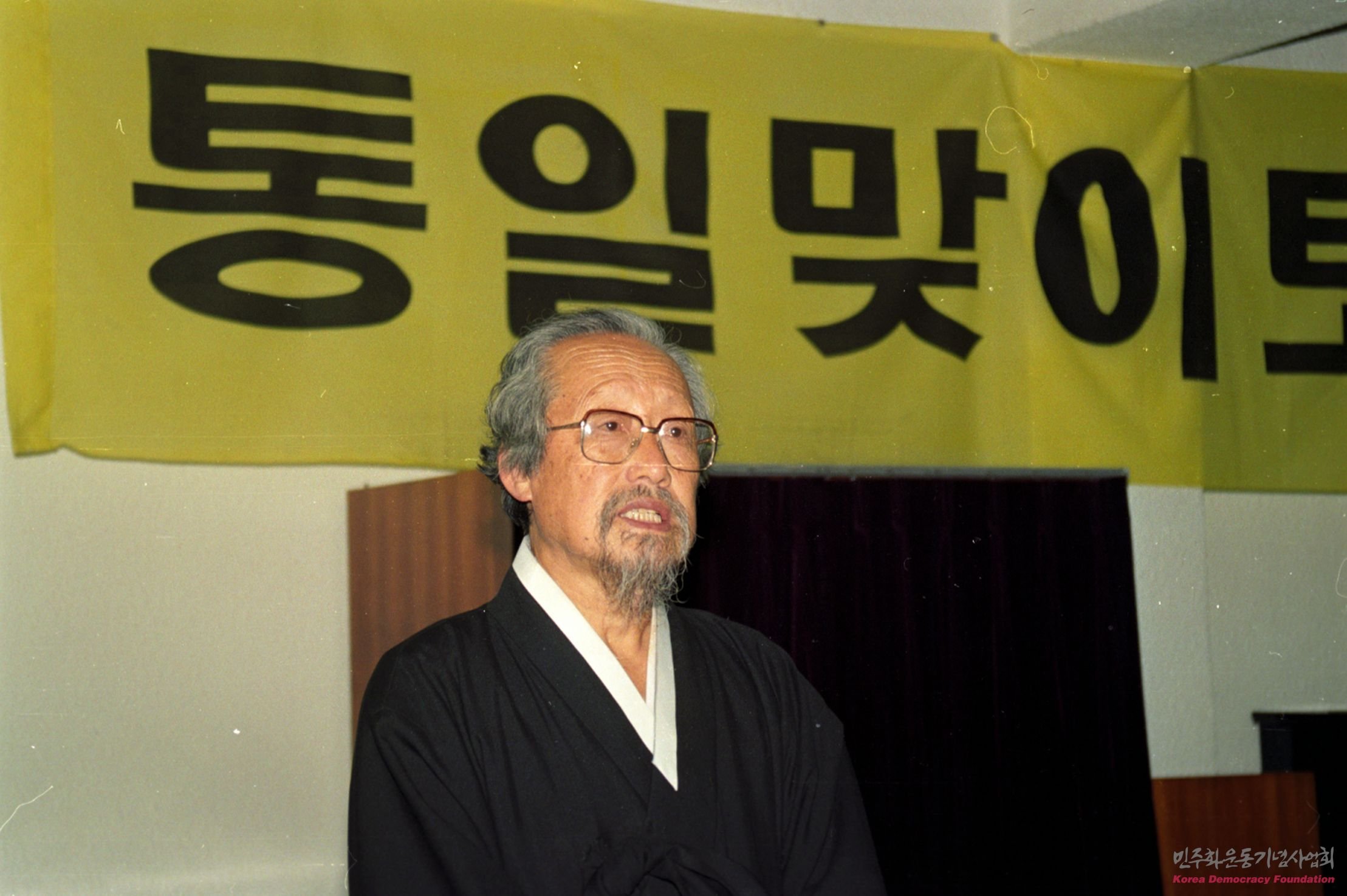 통일맞이 토론회에서 연설하는 문익환 목사