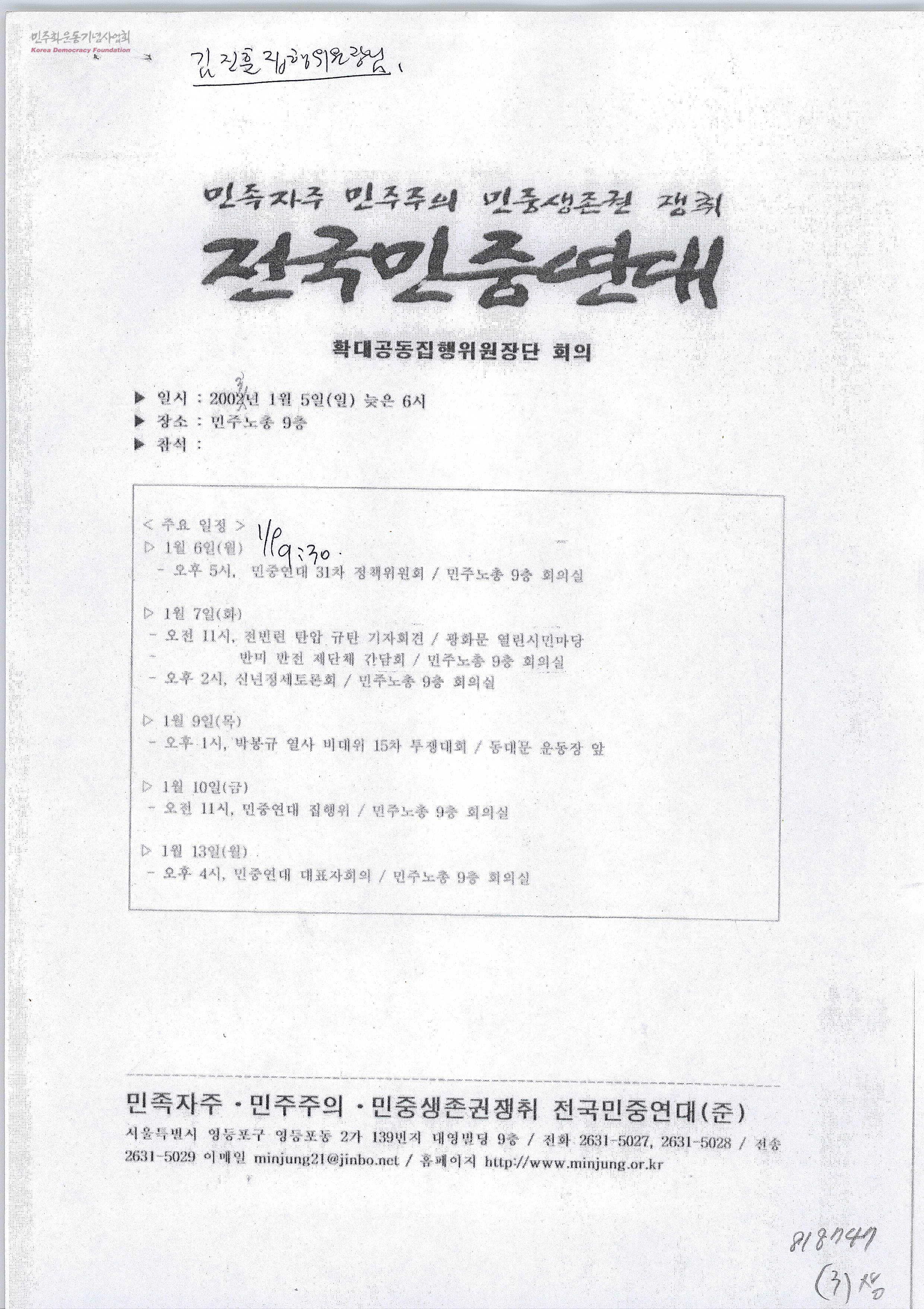 - 대표자회의 결과보고, 박봉규열사 비대위 투쟁상황보고, 민족자주위 보고