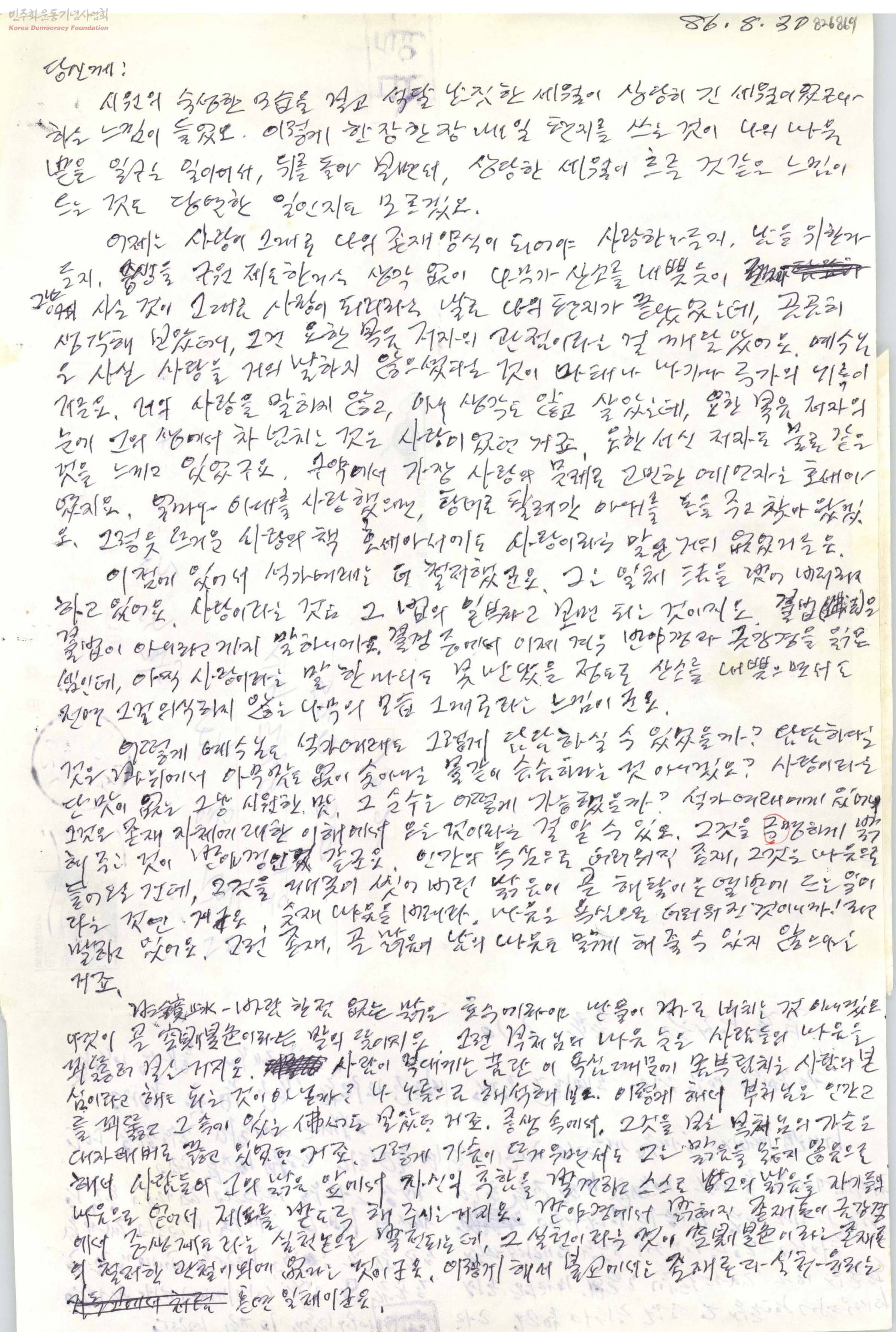 [문익환 목사가 아내 박용길에게 보내는 옥중 서신 1986년 8월]