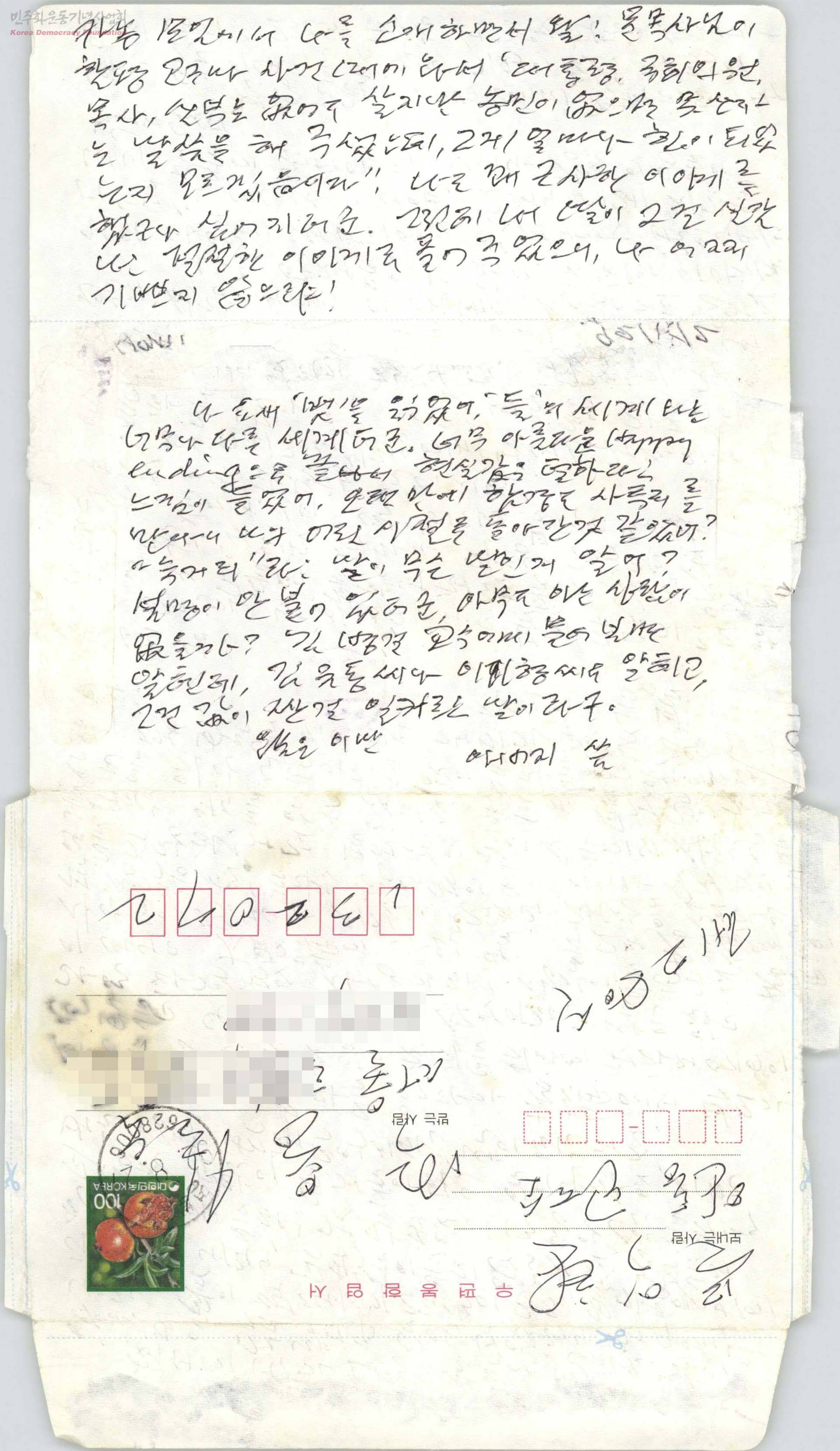 [문익환목사가 박용길장로와 윤정모님에게 보내는 옥중 서신 1992년 8월]