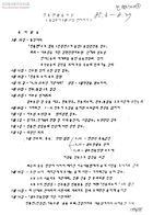 - 박용길장로가 89년 노태우정부의 승인없이 방북한 사건으로 수감 중인 남편 문익환목사에게 보내는 서신(제482신), 새벽에 일어나 언니가 떠나시는 날이여서 기도를 드림. 비행장으로 나갔는데 명화 여권이 아무리 찾아도 없어서 삼열이까지 네 식구만 떠나고 미국 대사관이 쉬는날이라 하루 늦어져 명화만 다시 들어왔음. 편지 뒷면에 형이 문익환 목사에게 안부를 전하는 서신이 쓰여있음. - 1990년 8월 4일자