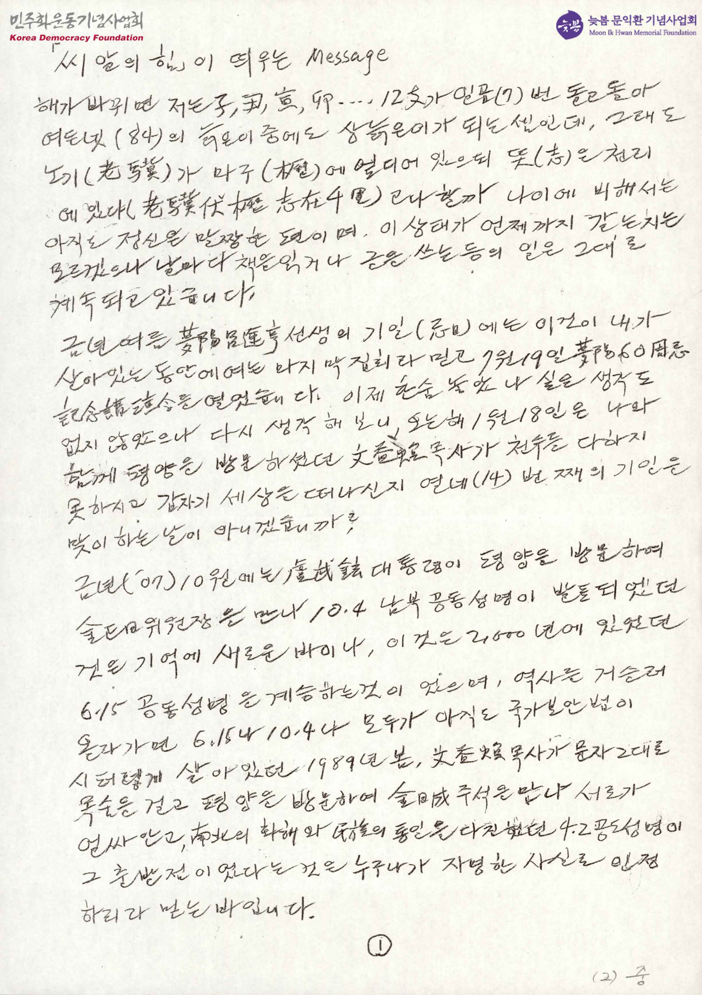 - 문익환목사 제14주기 추도모임은 '씨알의 힘'과 '통일맞이'의 공동주최로 개최됨.