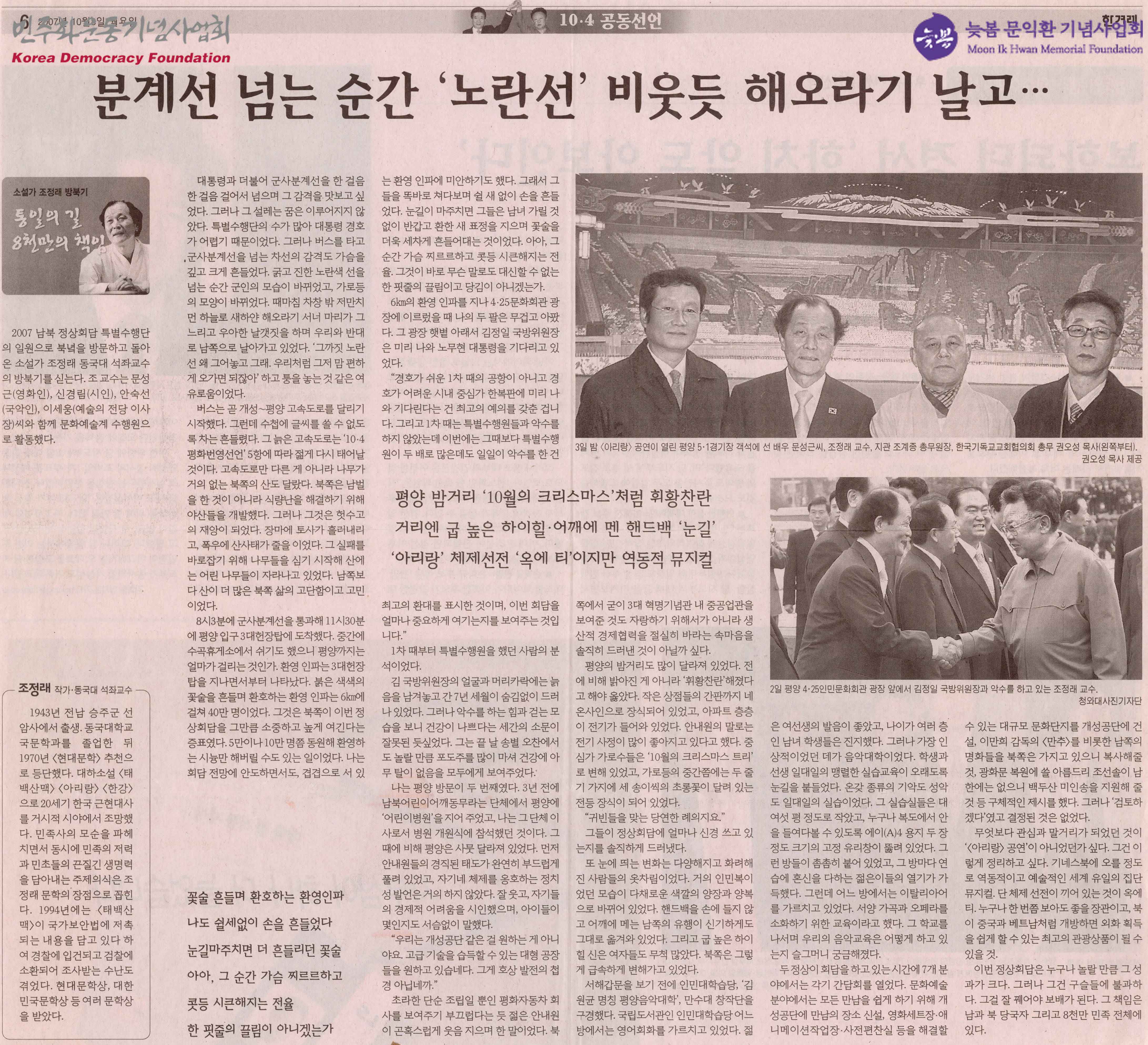 [신문스크랩] 10.4공동선언 - 분계선 넘는 순간 노란선 비웃듯 해오라기 날고