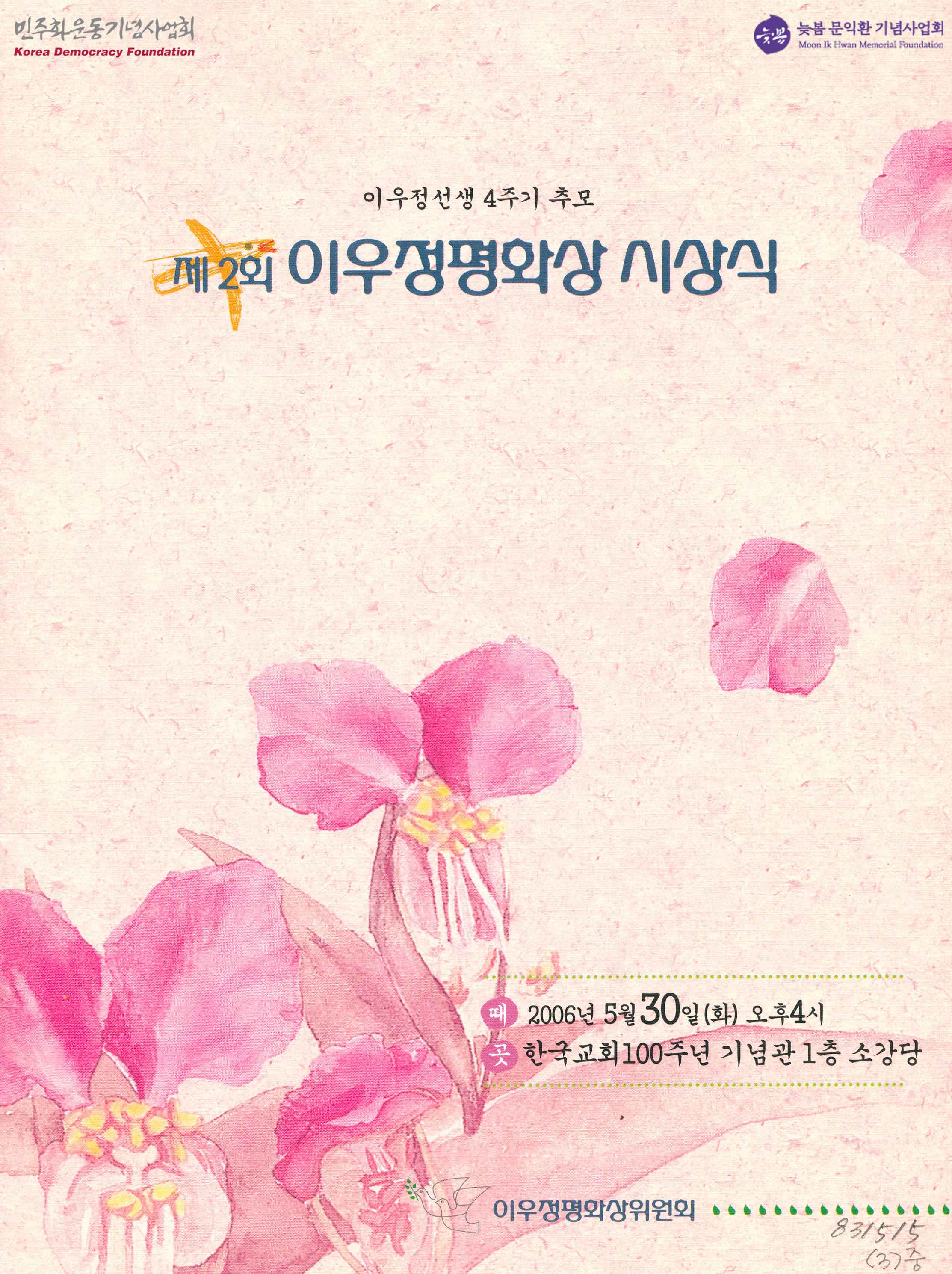 - 이우정선생 4주기 추모, 제2회 이우정평화상 시상식.