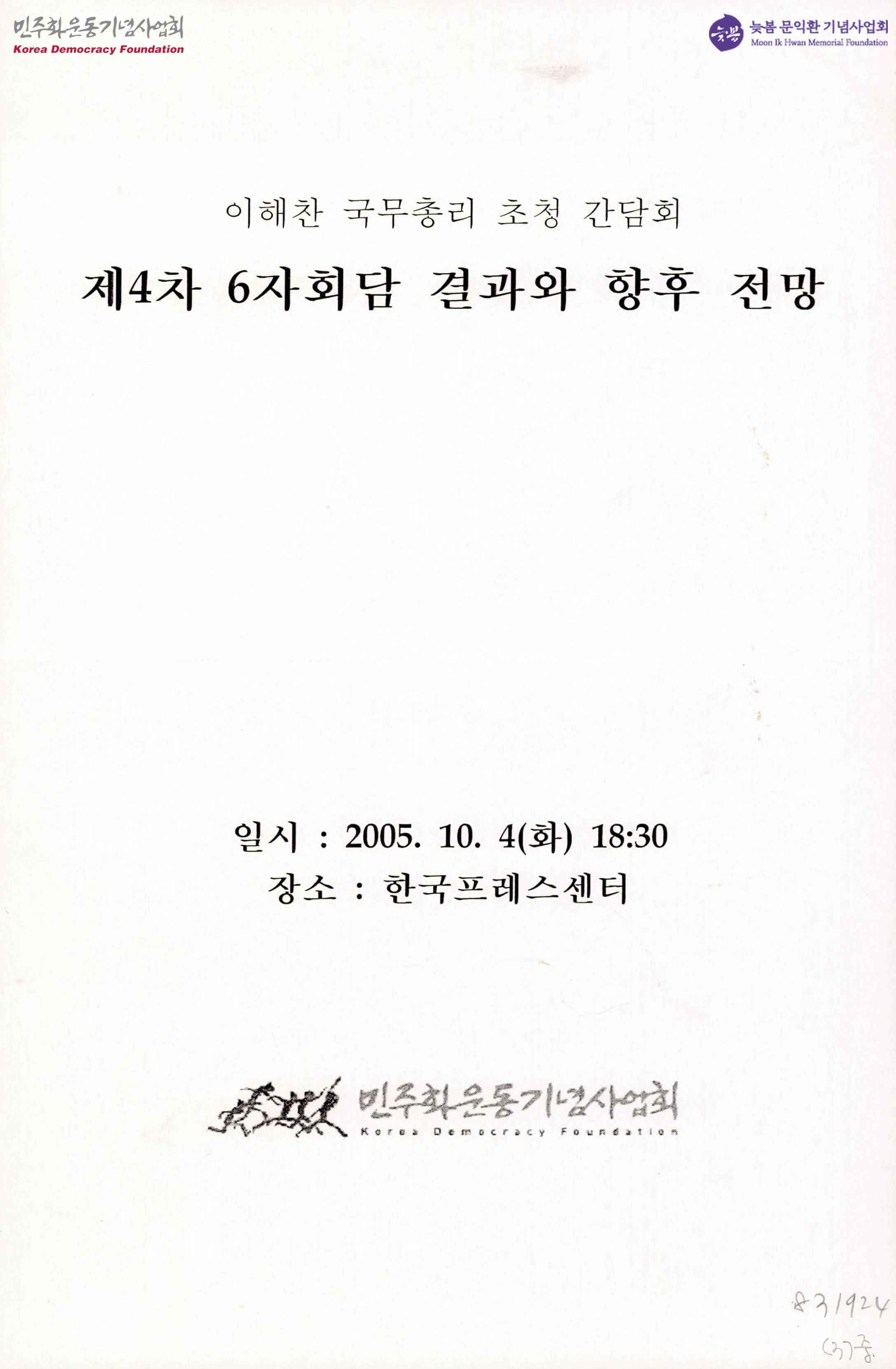 제4차 6자회담 결과와 향후 전망-이해찬 국무총리 초청 간담회-