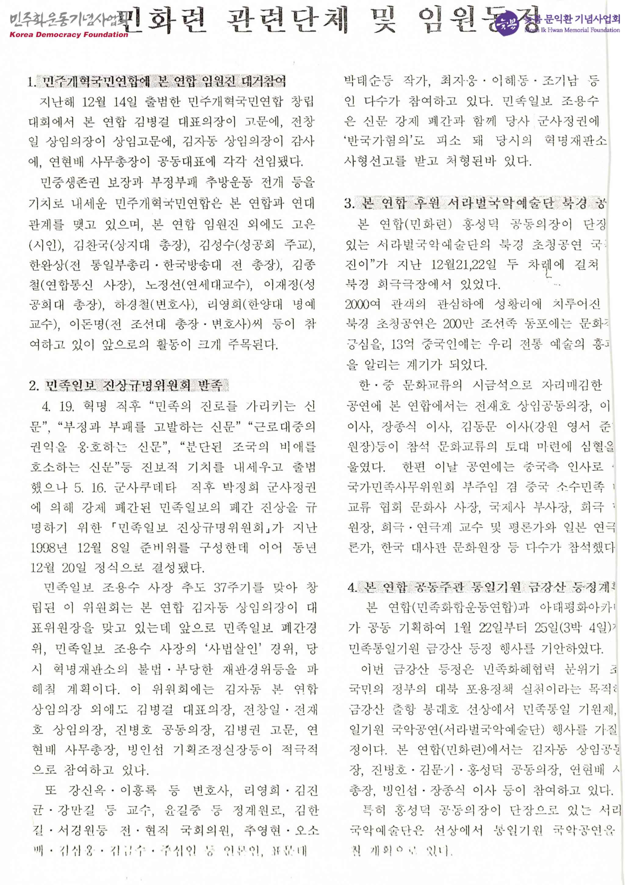 - 민종화합운동연합에서 발행되는 무언가에서 오려낸 페이지