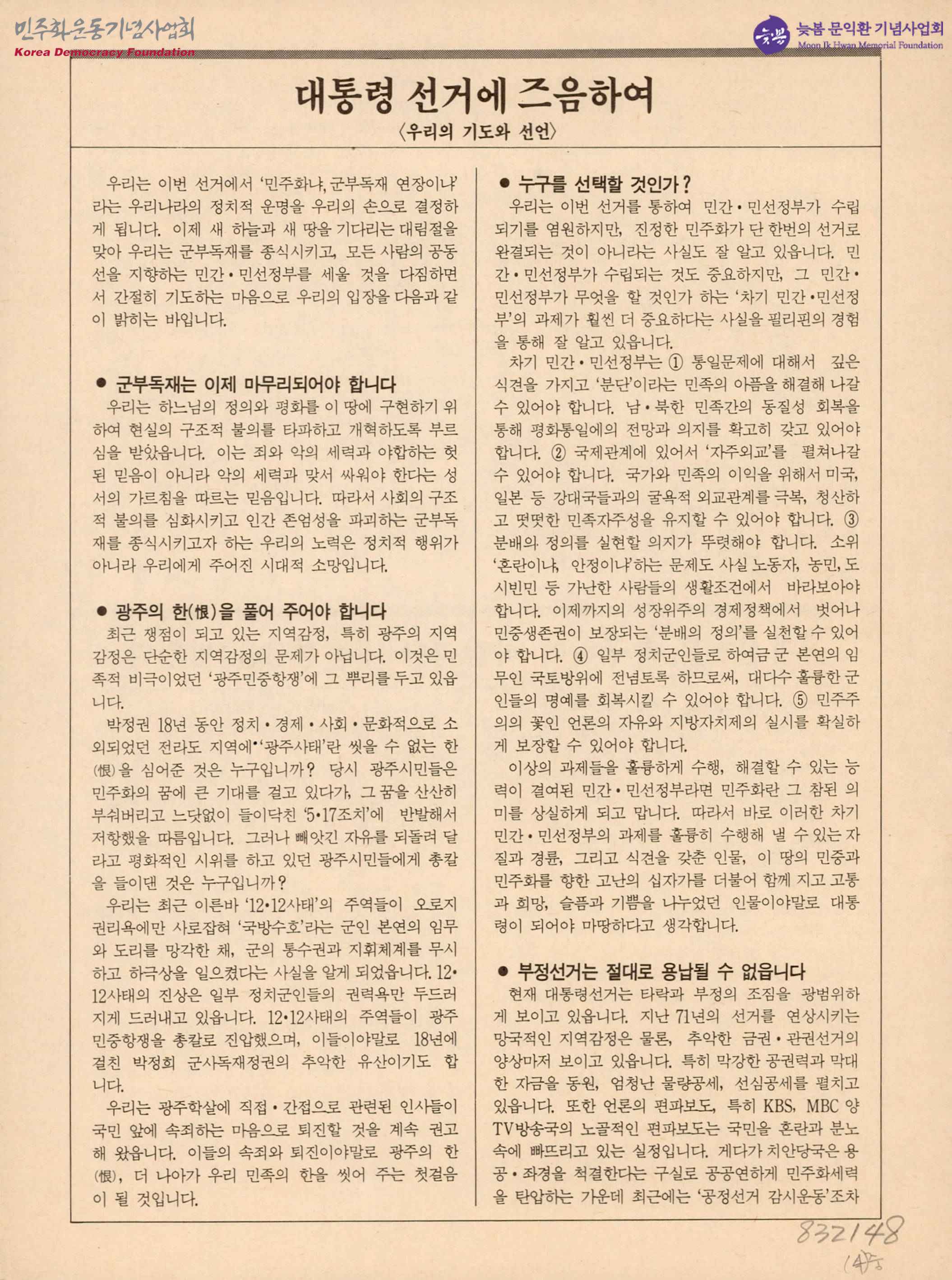 - 공명선거를 촉구하며 바람직한 대통령상을 밝힌다.