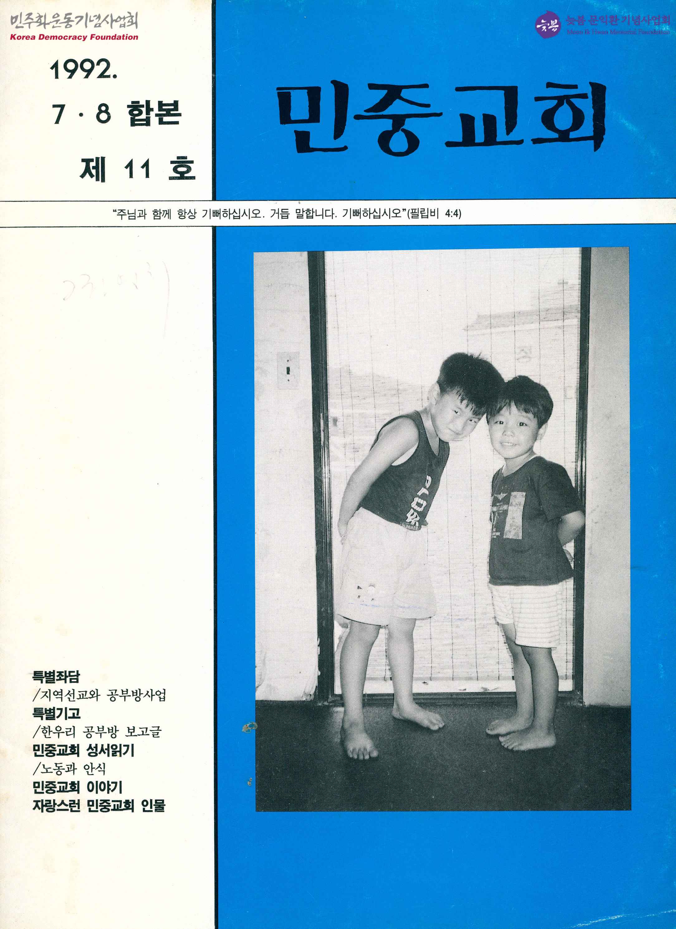 - 목회서신. 특별좌담. 특별기고. 민교칼럼. 민중교회 성서읽기. 방문기. 평신도 발언. 백창우의 노래이야기. 위원회 활동보고 등.