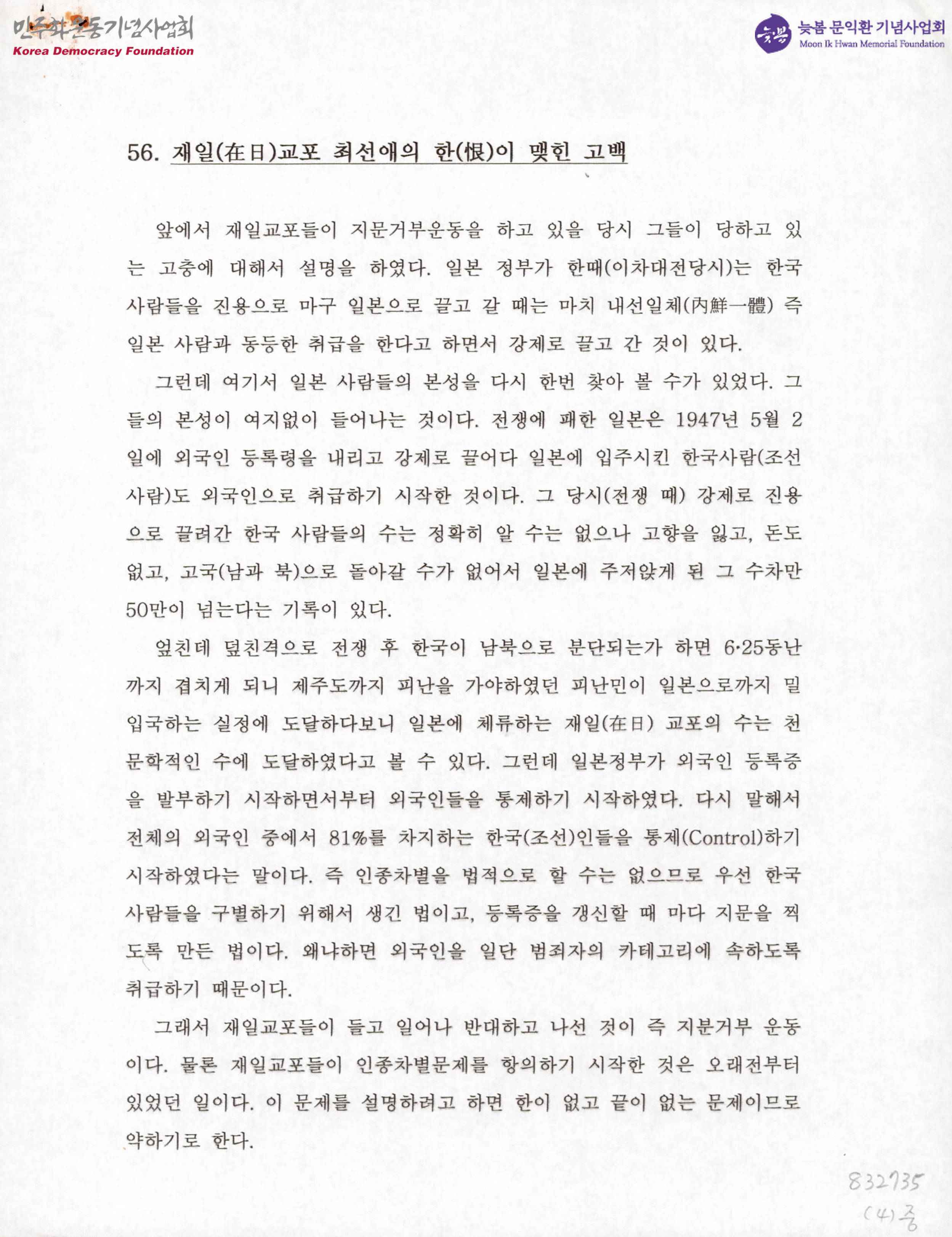 내가 경험한 民主化 운동 - 56. 재일(在日)교포 최선애의 한(恨)이 맺힌 고백