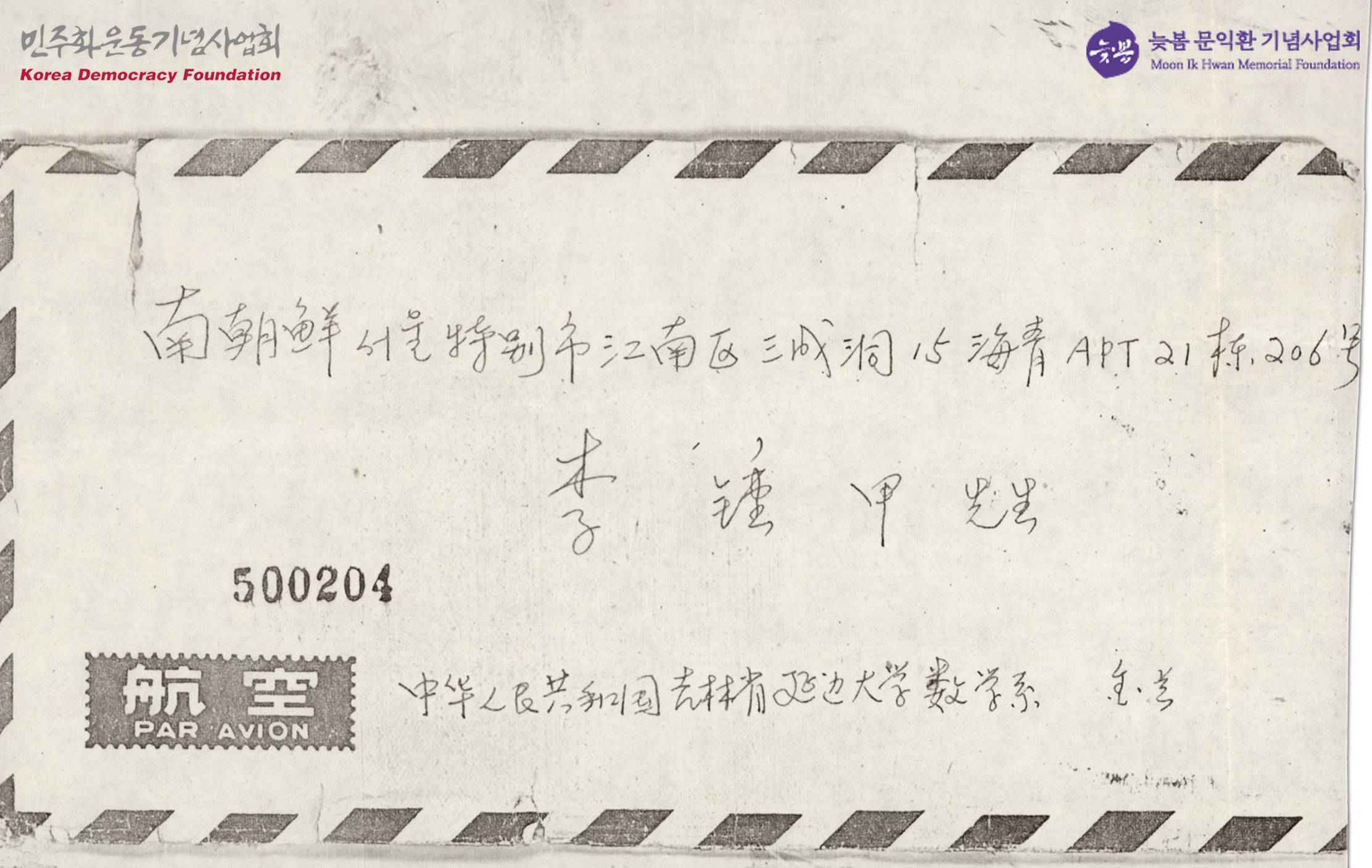 [김란이 연변에서 이종갑선생님에게 보내는 서신]