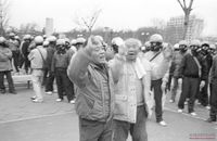 - '쌀개방 저지와 미국규탄 청년결의대회'가 13일 오후 서울 탑골공원에서 한국민주청년단체협의회 등 3개단체가 주최해 열린 가운데 참석자들이 미국산 '칼로스 쌀 화형식'을 거행하고 있다.