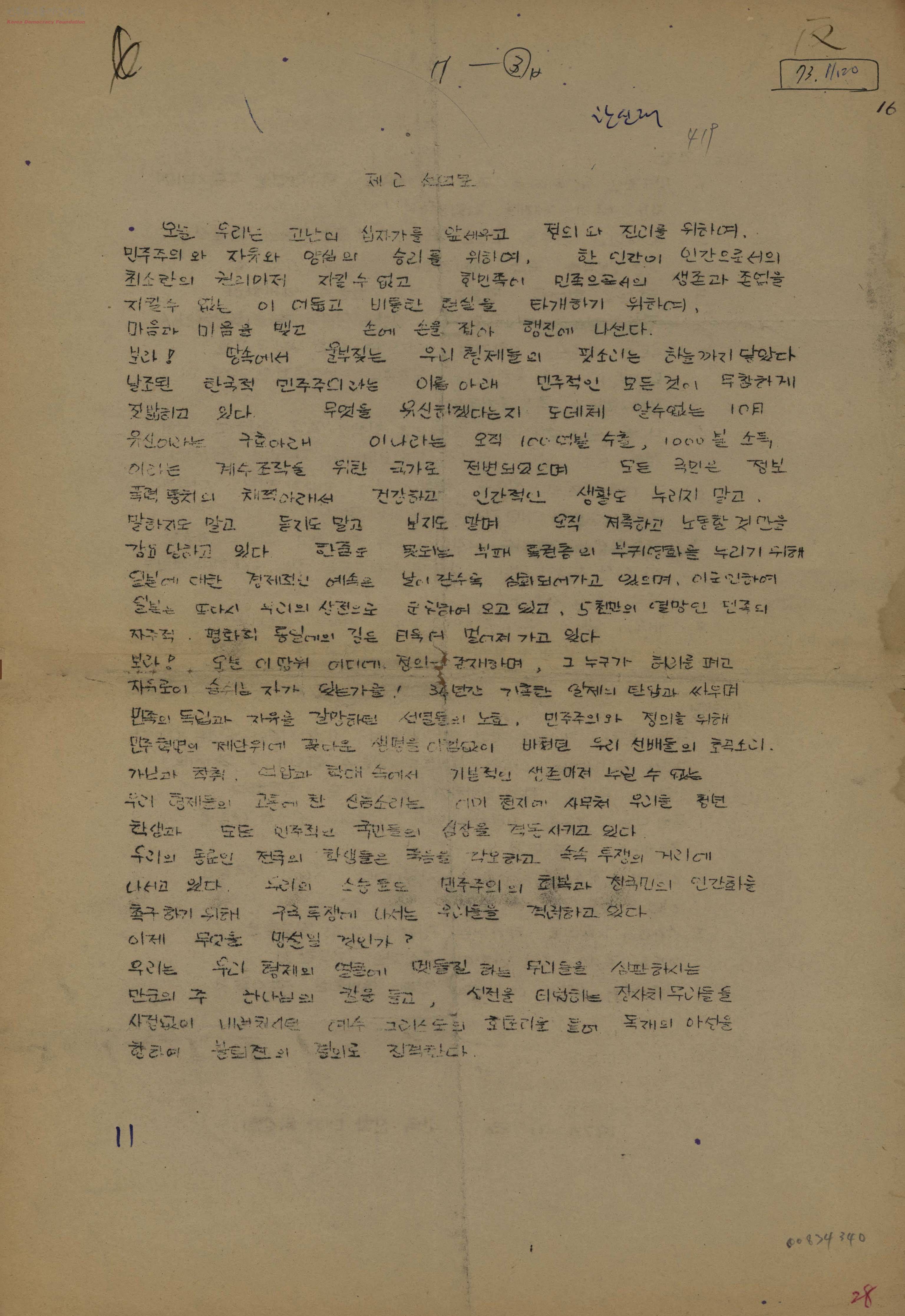 - 유신체제를 걷어치우고 민주헌법을 부활시키며 자유 민주주의 체제를 확립하라 등의 주장과 행동 강령에 관한 내용.