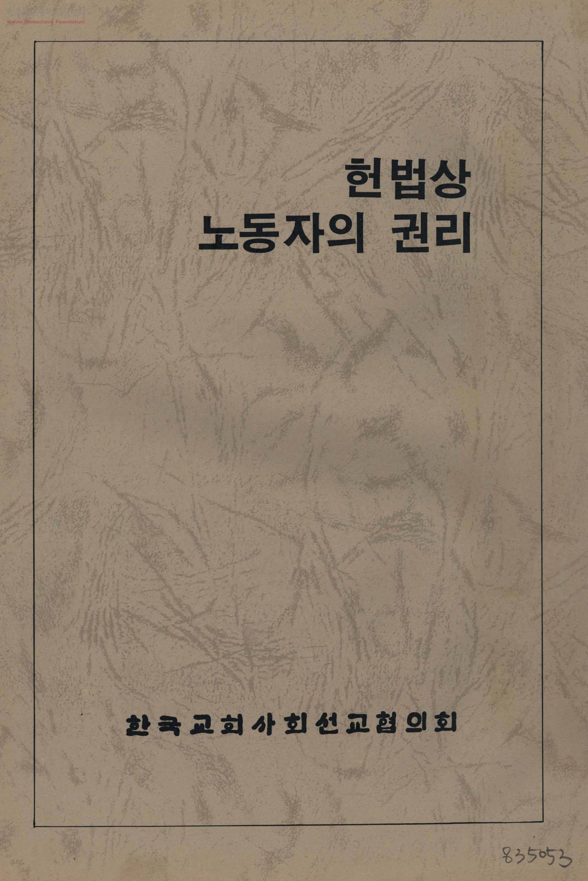 - 전두환 정권이 산업선교회, JOC 등 노동운동 지원 종교단체와 노동운동단체의 노동운동 지원을 막기 위해 만들었던 대표적 노동악법인 '제3자 개입금지'에 대한 내용 수록 사선 발행 노동법 관련 자료 1. 헌법상 노동자의 기본권 2. 노동기본권의 내용 3. 노동3권의 보장과 제한 4. 실정노동법규상의 장애극복문제