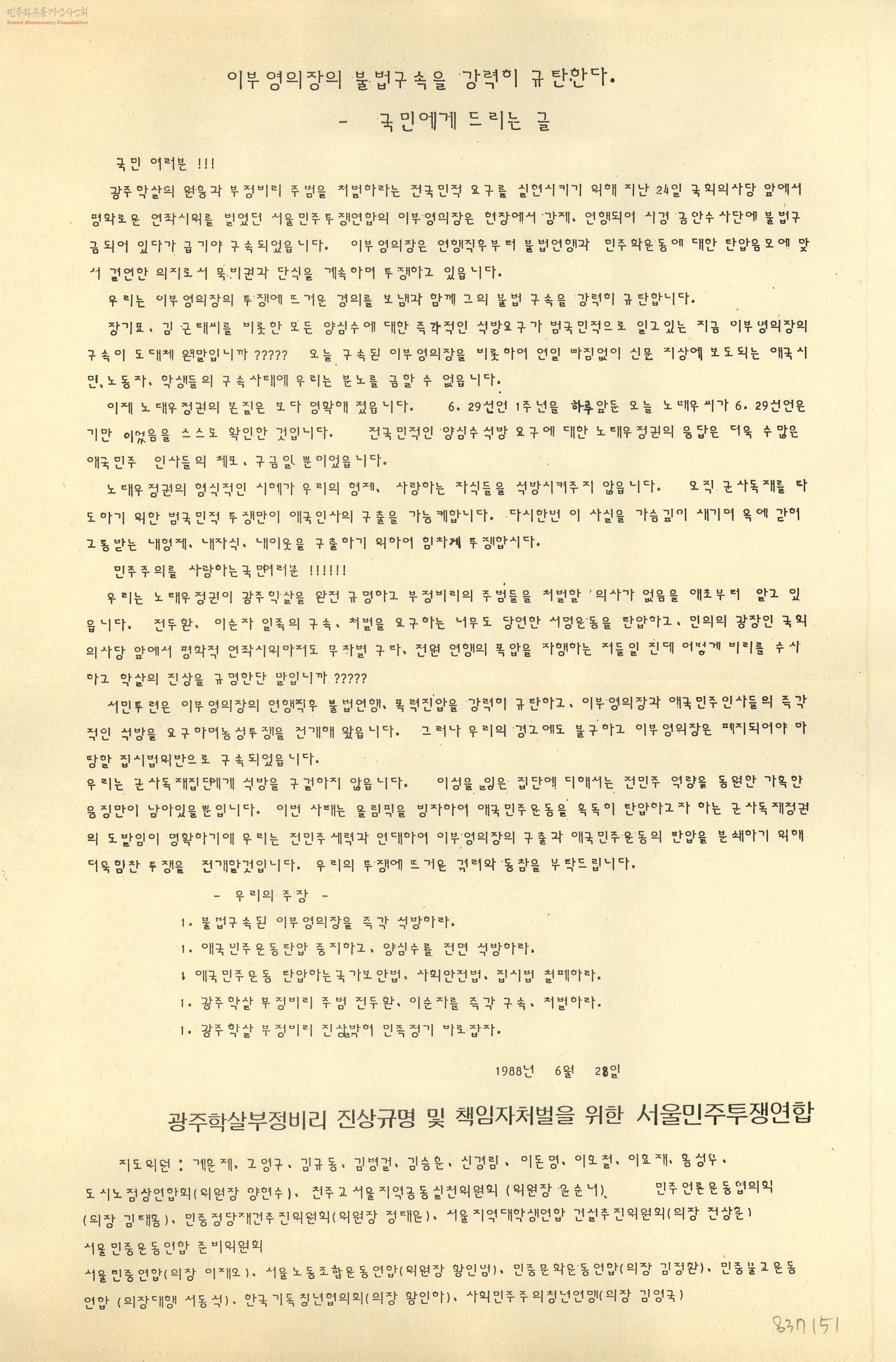 - 광주학살부정비리진상규명및책임자처벌을위한서울민주투쟁연합