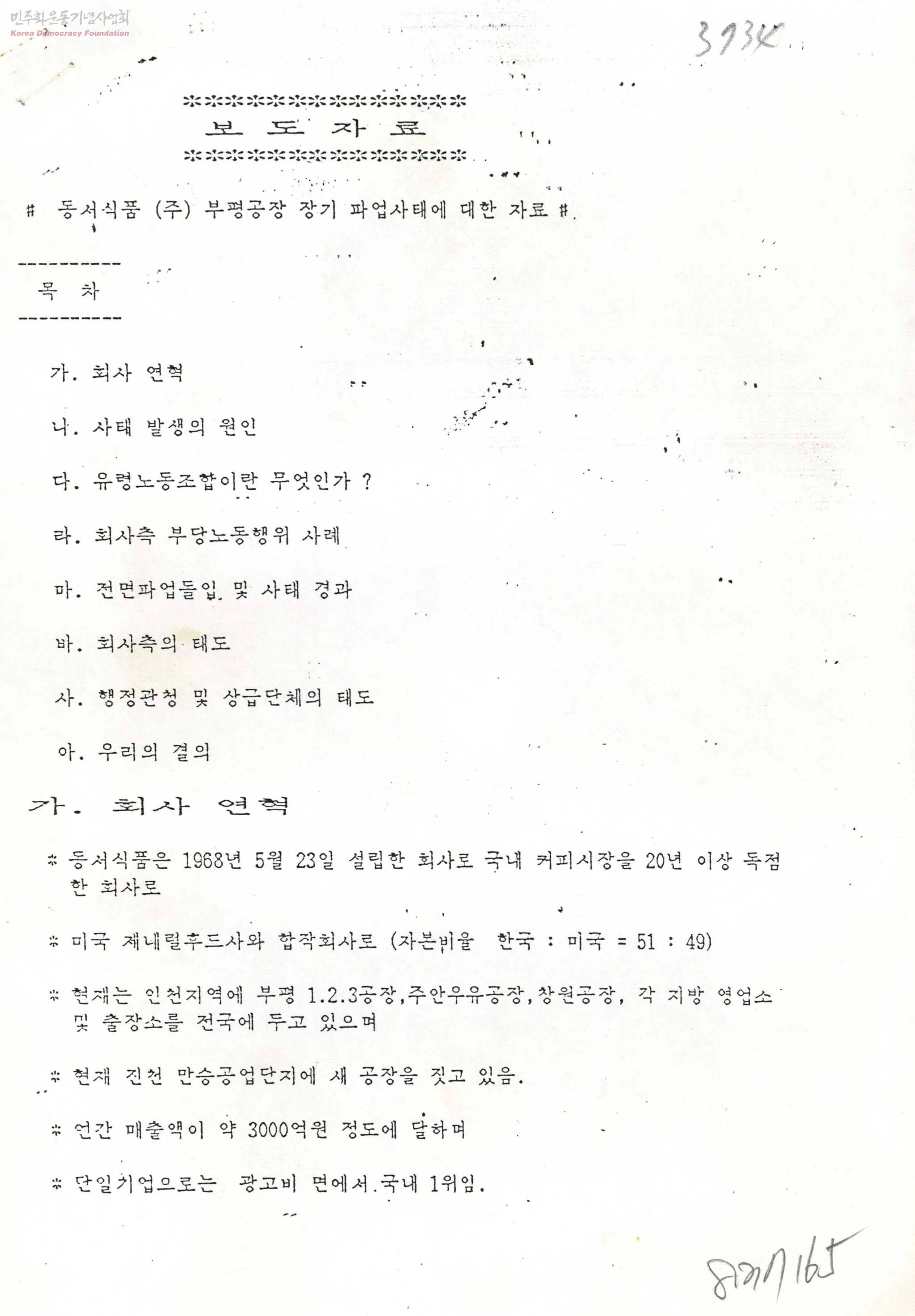 보도자료-동서식품(주)부평공장 장기 파업사태에 대한 자료