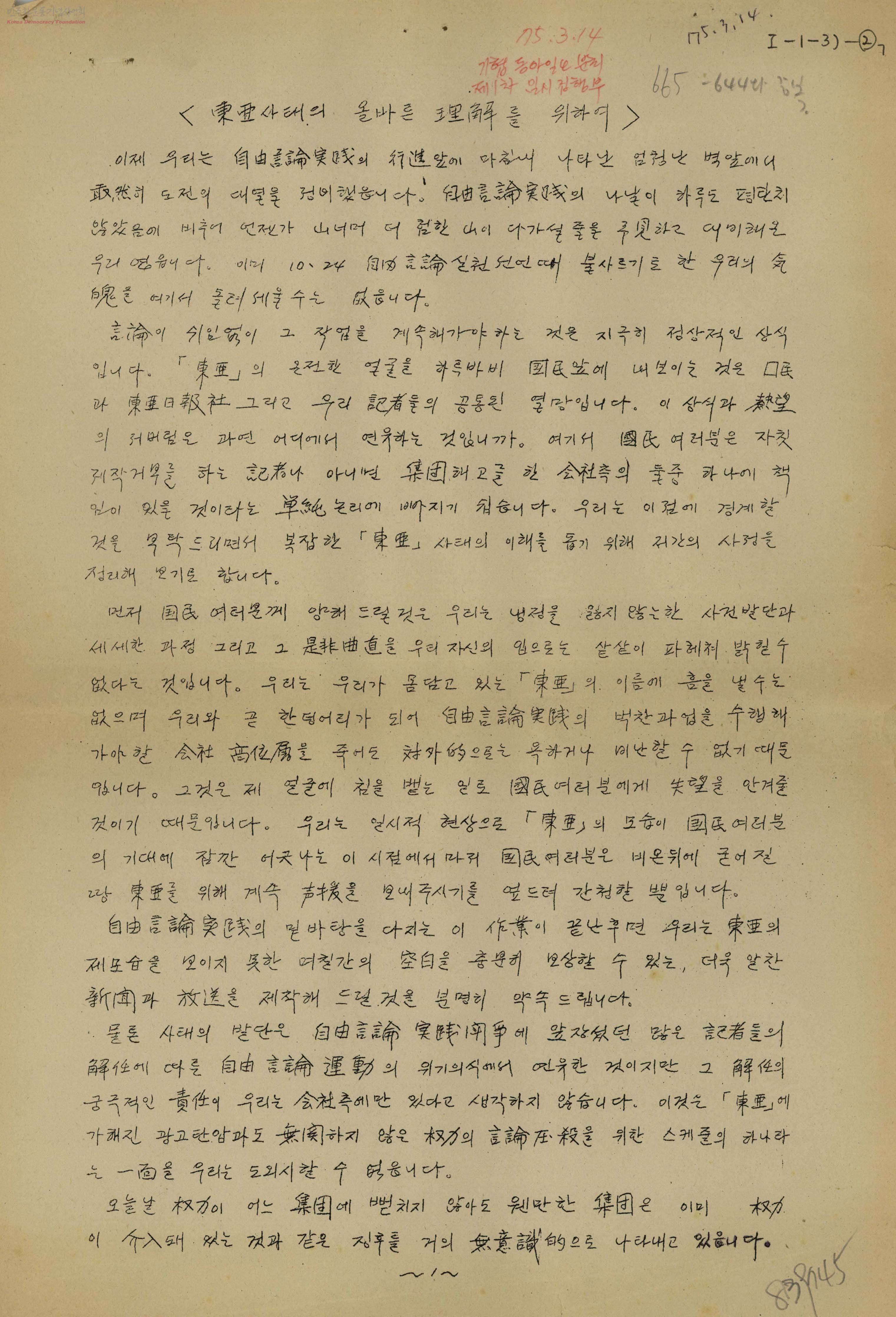 - 자유언론 실천투쟁에 앞장섰던 많은 기자들의 해임에 따른 자유언론운동.