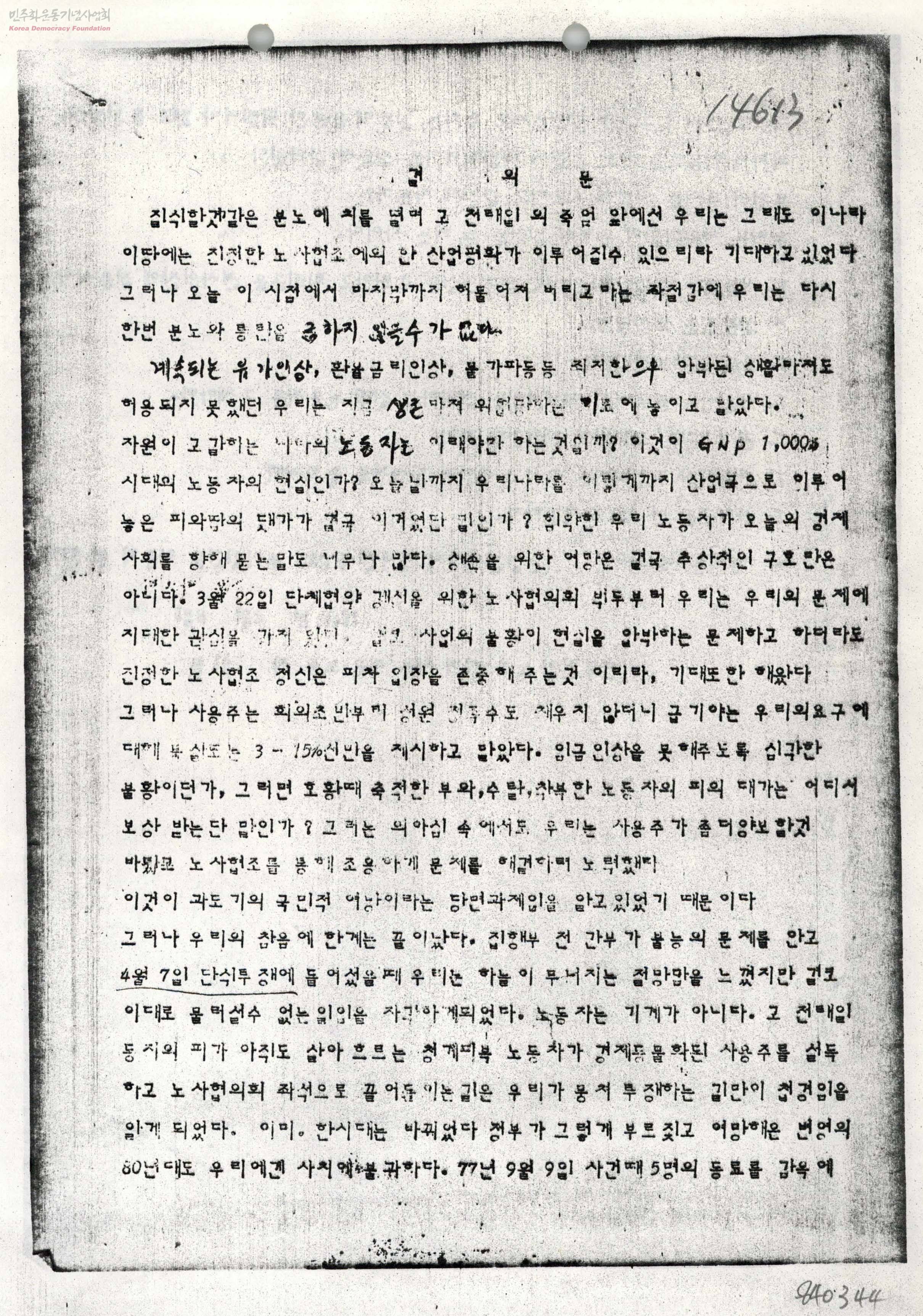 - 전국연합노조청계피복지부노동자일동