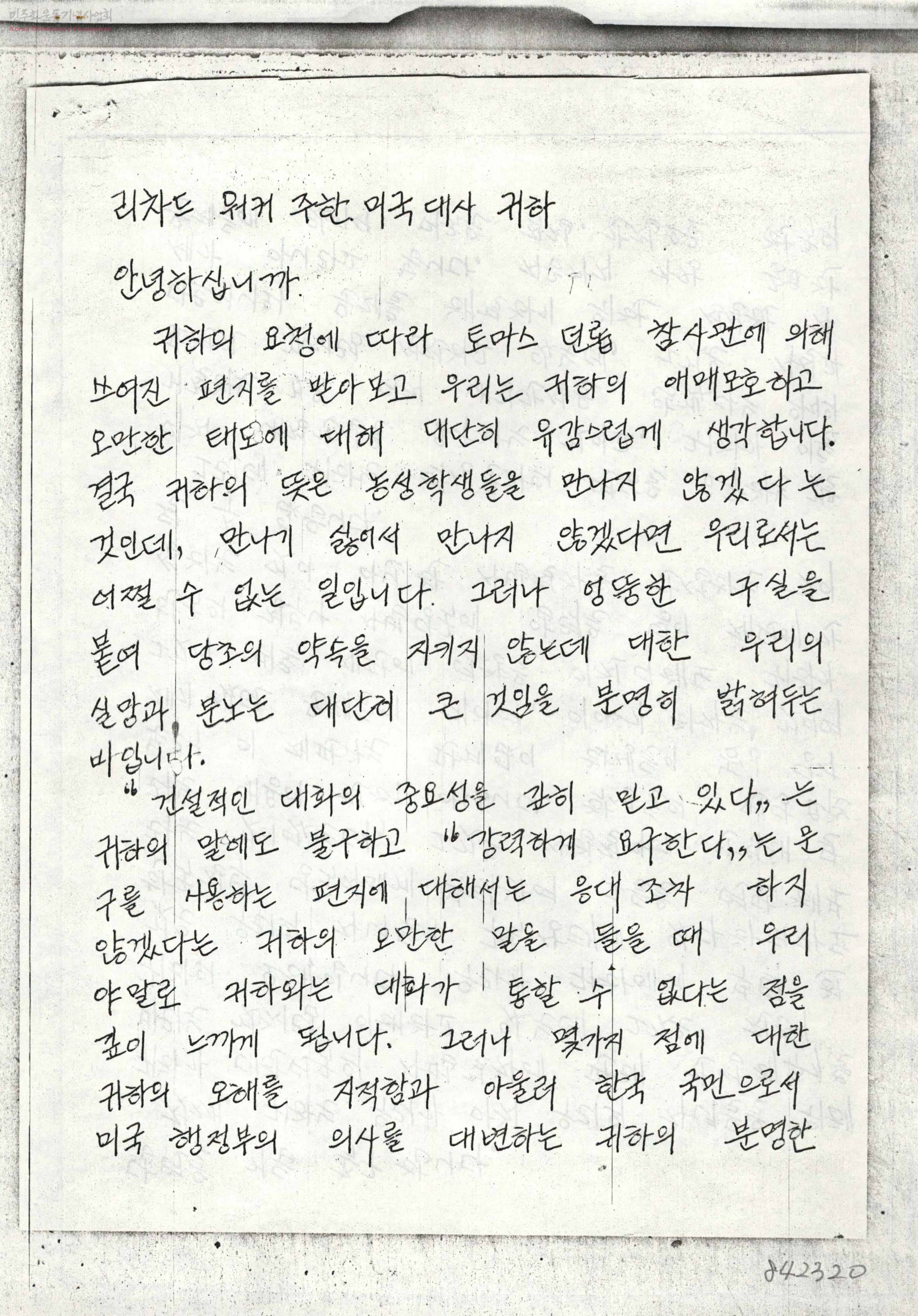 리차드 위커 주한 미국대사 귀하[필사본]
