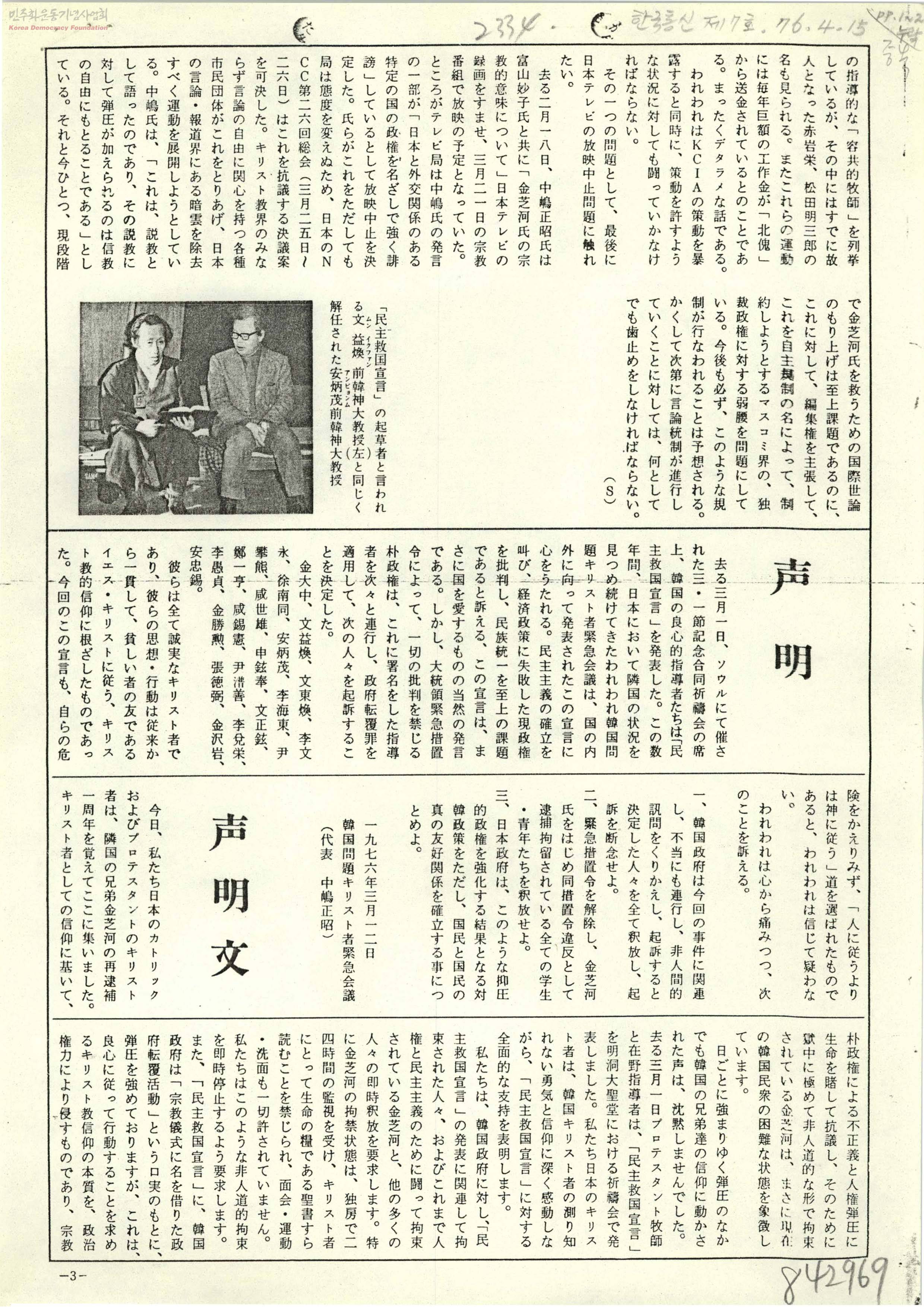 - 한국 민주화 운동 소식을 일본에 보내고 알리고자 함