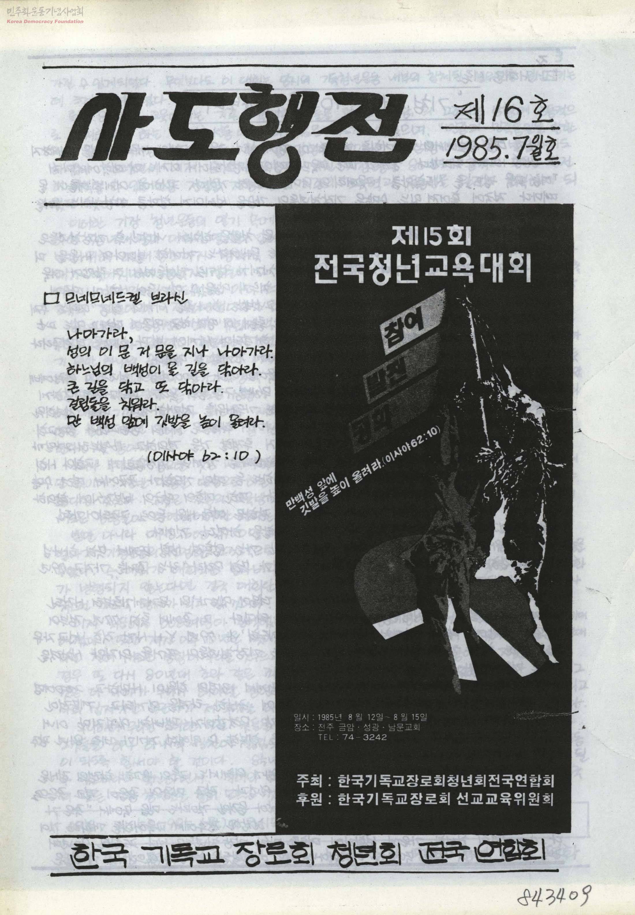 - 서대문 시론-'기청대회' 10년을 돌아보며 젊은이의 함성-검찰의 『삼민투위』수사발표를 고발한다 특집-드디어 드러난 군부통치의 마각 등