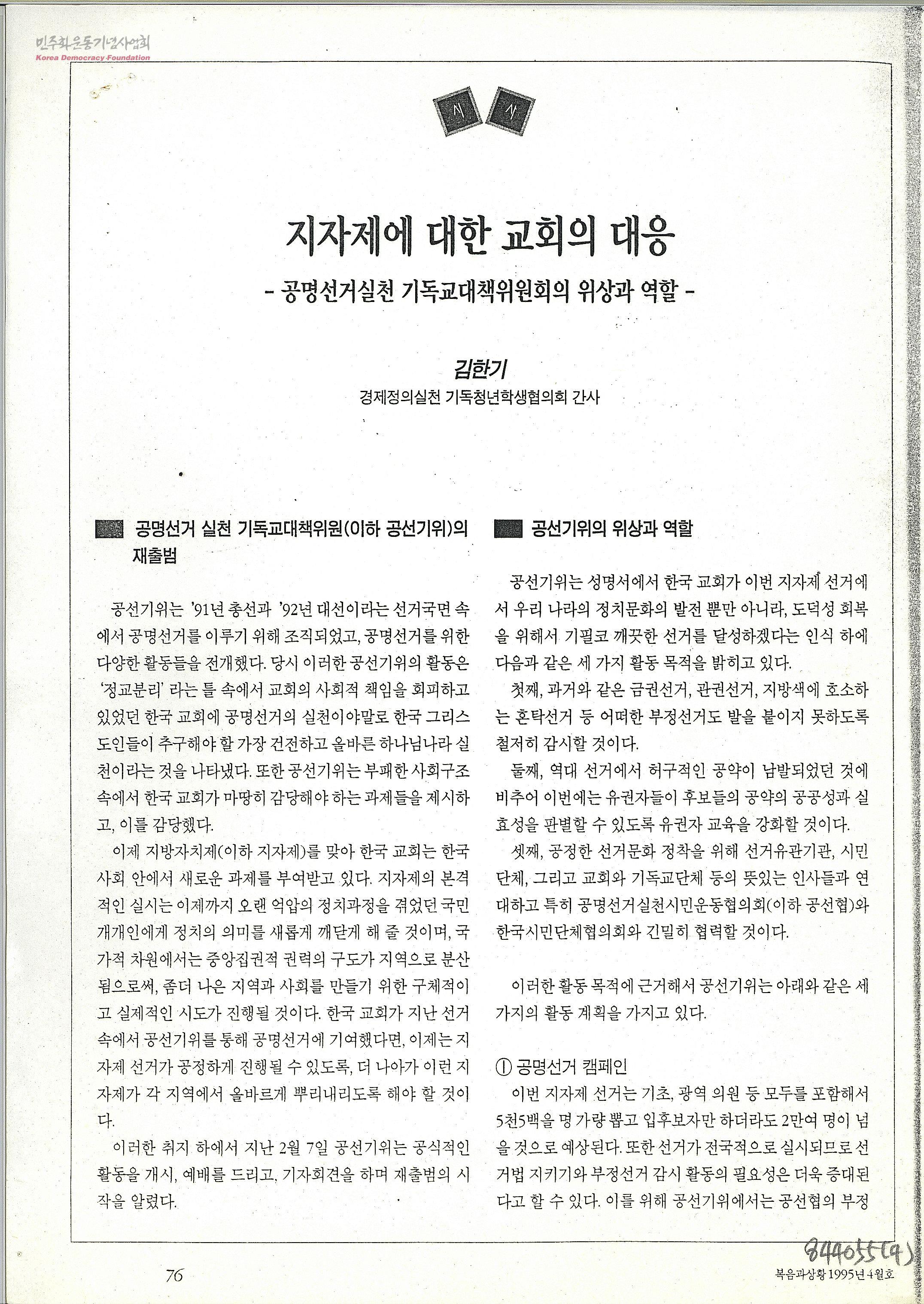 지자체에 대한 교회의 대응-공명선거실천 기독교대책위원회의 위상과 역할