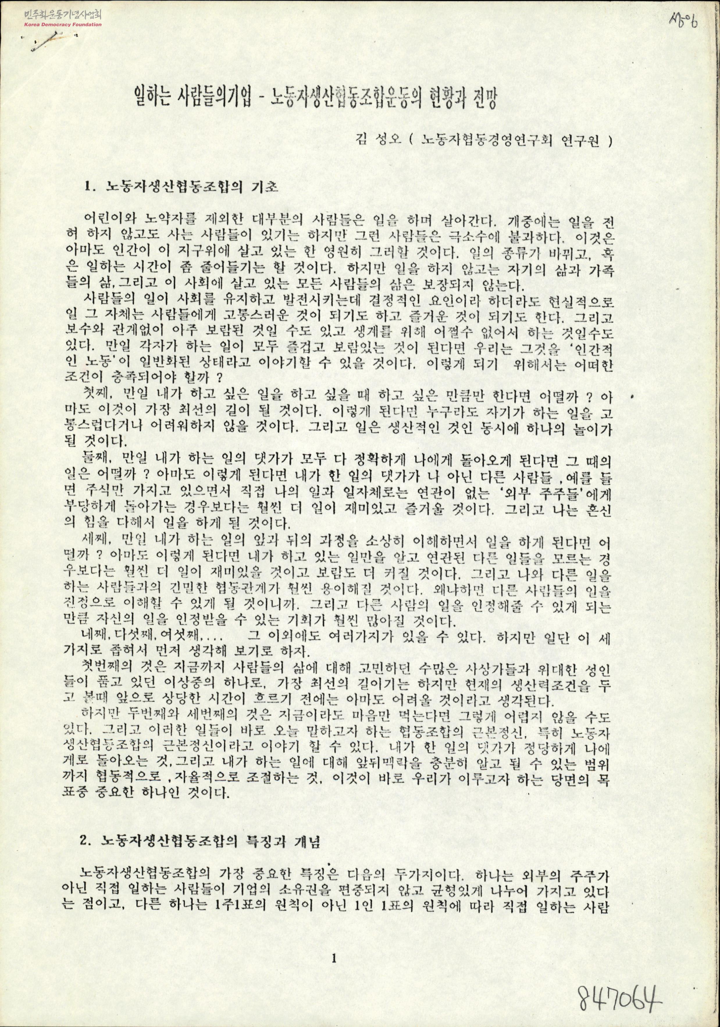 일하는 사람들의기업-노동자생산협동조합운동의 현황과 전망