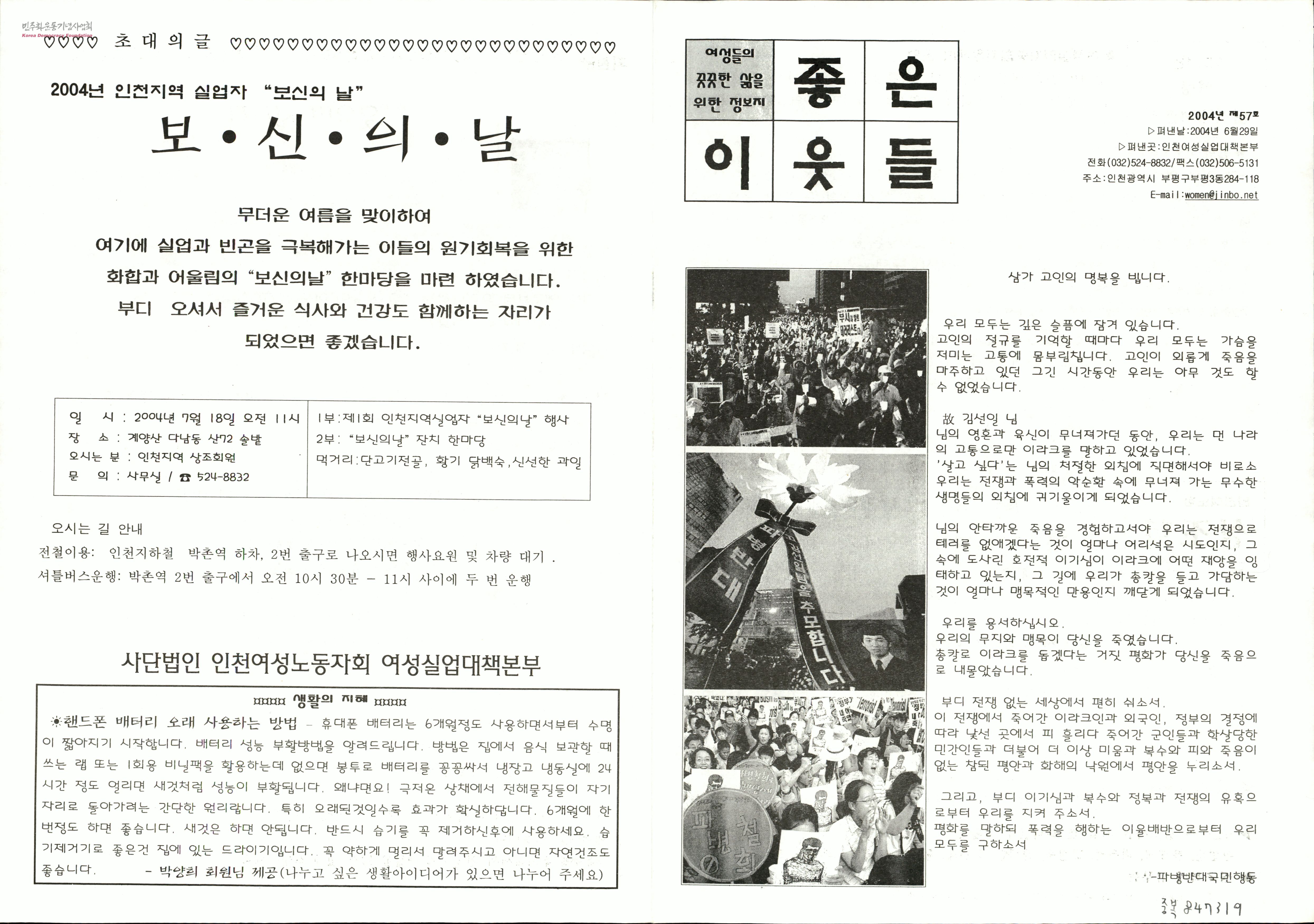 - 故 김선일 님 추모 2004년 인천지역 실업자 보신의 날 알림 등