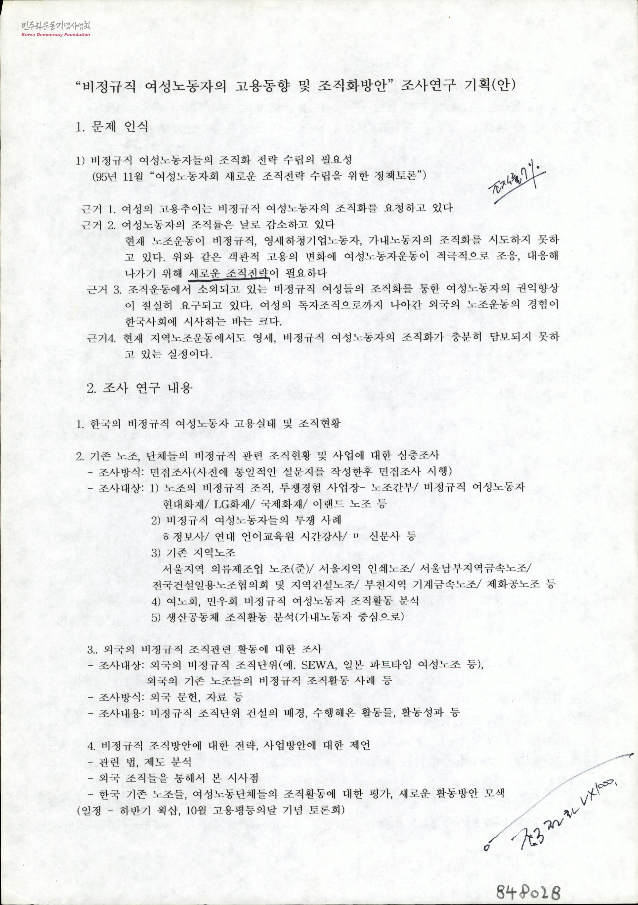 "비정규직 여성노동자의 고용동향 및 조직화 방안" 조사연구 기획(안)