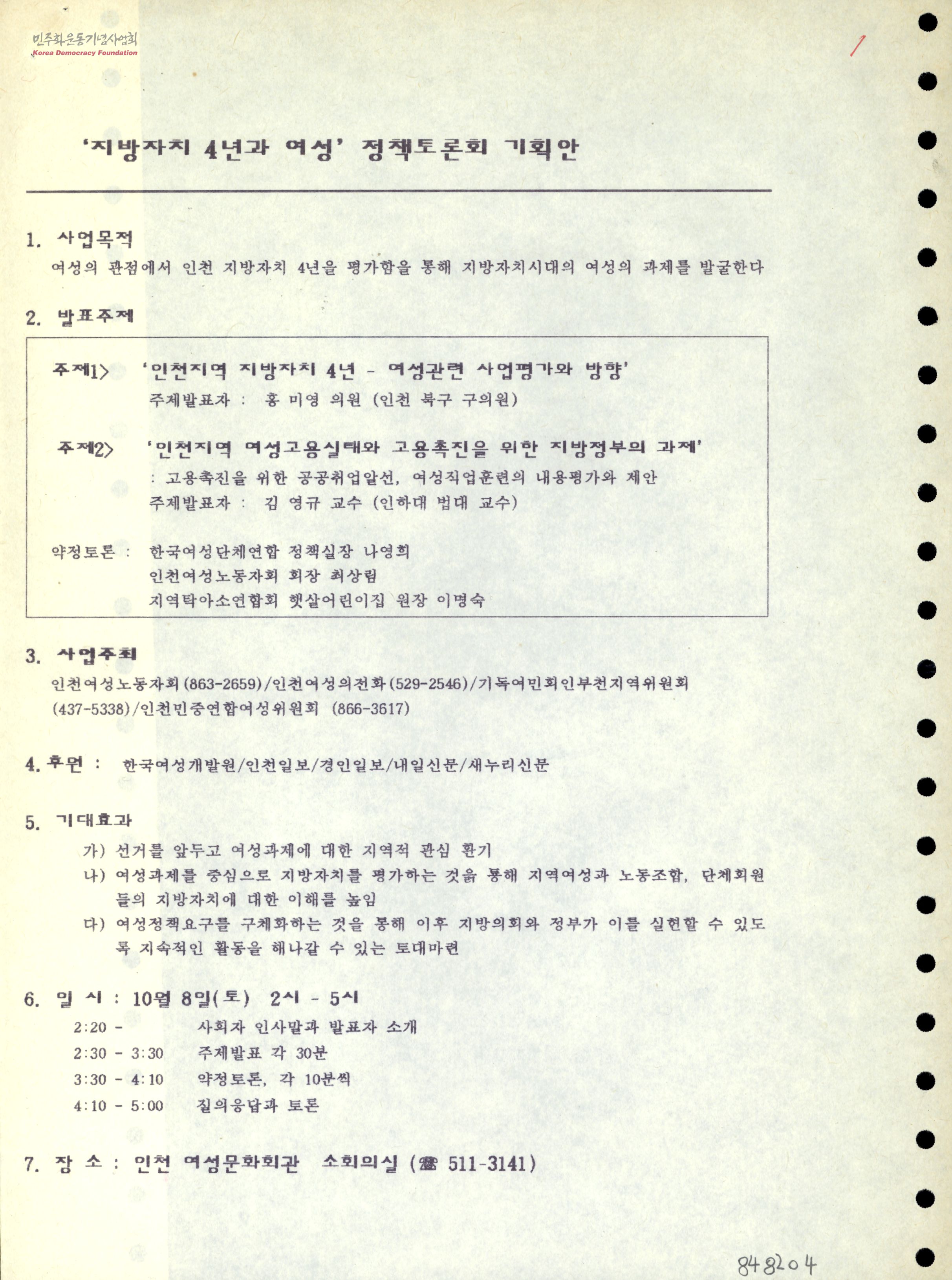 - 인천지역 지방자치 4년 - 여성관련 사업평가와 방향 인천지역 여성고용실태와 고용촉진을 위한 지방정부의 과제 등