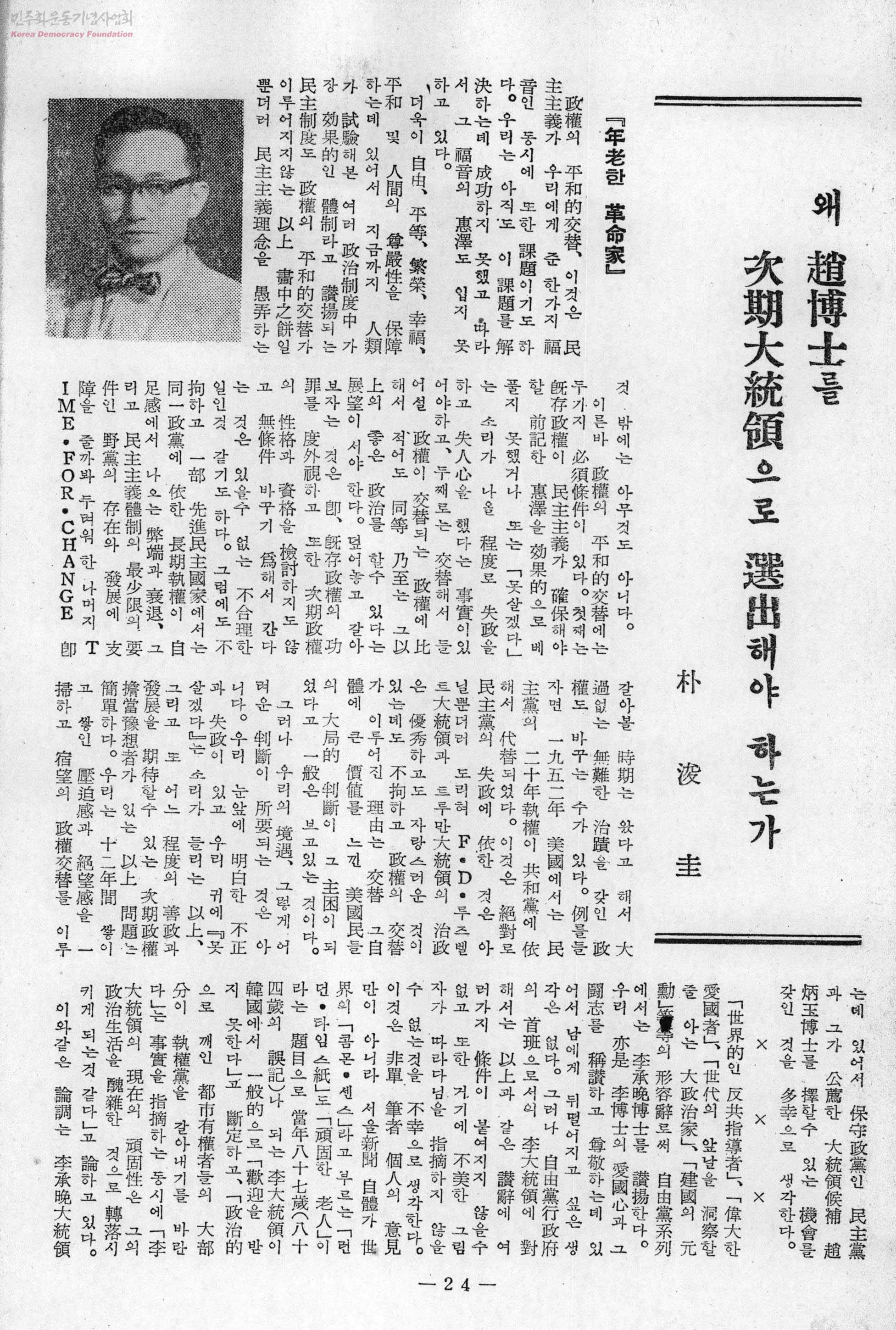 왜 趙博士를 次期大統領으로 選出해야 하는가