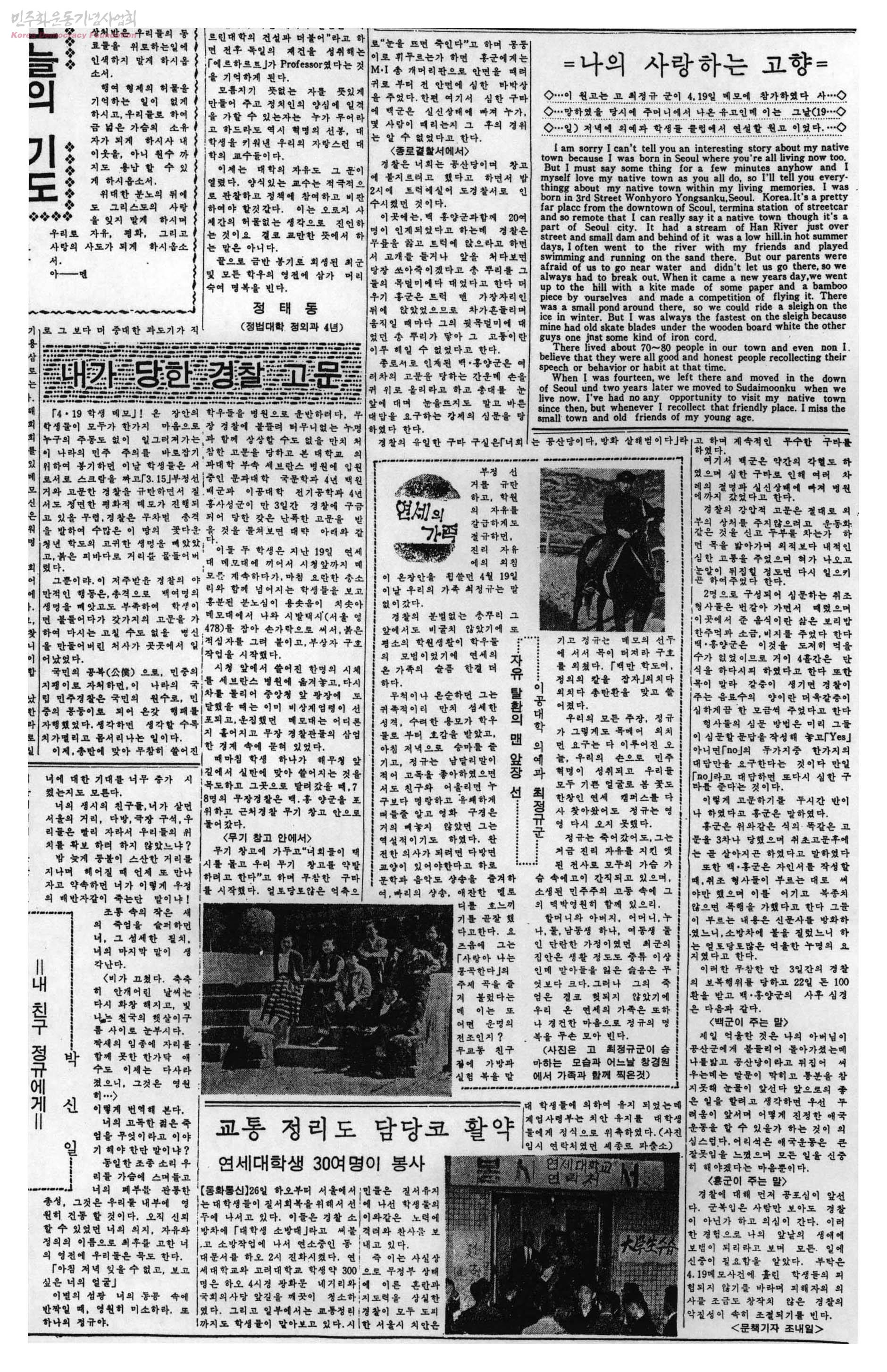 - 1960년 이승만정권의 독재와 무능에 항거한 4.19 민주화 운동 관련. 내가 당한 경찰 고문